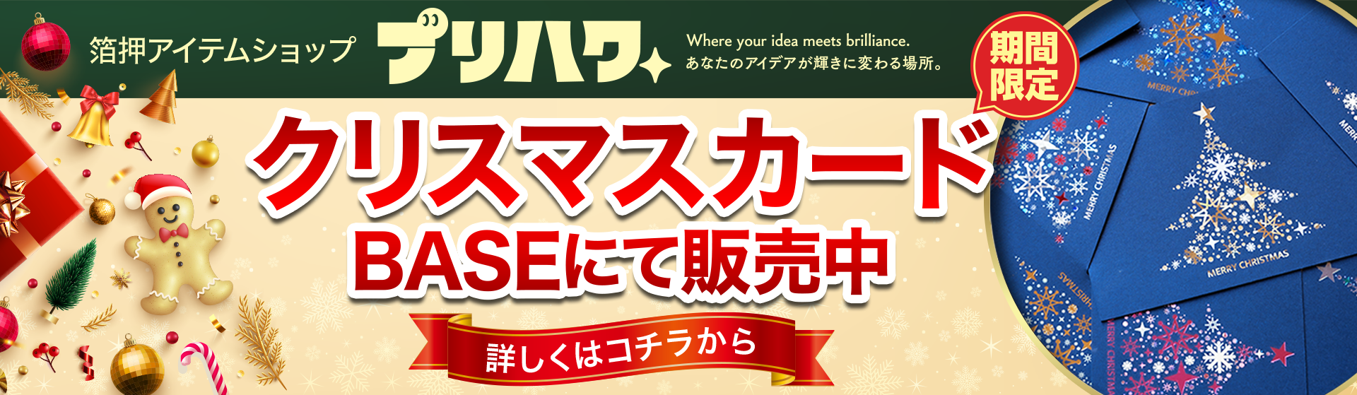弊社では、名刺・ショップカード・挨拶状などの紙ツールに文字通り箔押しを行っております。